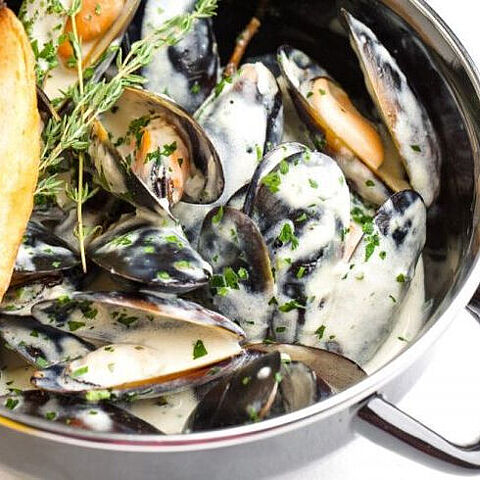 Мидии в сливочном соусе - это простое и вкусное блюдо: мидии с створках, сливки, чесночное масло, петрушка и свежая чиабатта. Его по достоинству оценят любители морепродуктов. Отличный ужин или обед.